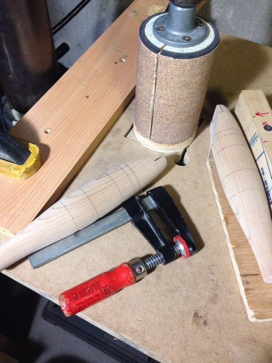 I tried a little but cutting that subtle concave slope has proven frustrating. Can't do it on a 3-4" radius. The concavity at the rear of the slope always ends up too steep. You need a drum about 20-30" in diameter. Next time I think I'll try a sanding belt glued to the drive wheel of a big bandsaw. Alternatively some sort of jig to move the plug in a slight curved path while held on its side against a drill press sanding drum or shaper bit might work.