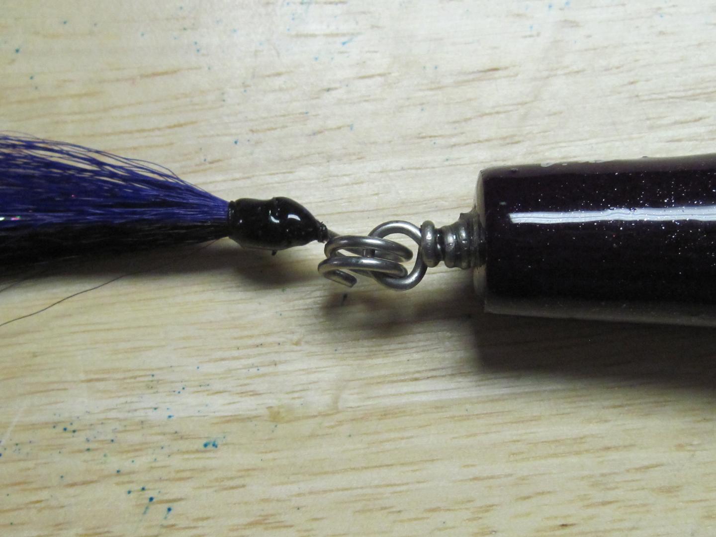 I then decided to take the second wrap the rest of the way around and end it near the tag end. When i tested this i noticed the tail stayed tight inside the tail wrap loop and moved so much smoother, the action as described by chef is dead on, he had posted a video of a plug i built him, and it had one of thos "snap ring" style wraps, and when i was swimming the conrad hybrid, it was jaw dropping action.