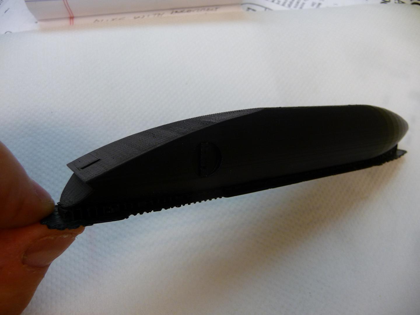 I know this is a wooden plug building forum but here are a few Seapups that I printed on my 3d printer. 1 1/2, 1 3/4 & 2 oz. Material: ABS. Very tough. Interior is honeycombed not hollow as are most injection molded plastic plugs. Color is all the way through. They were 3d modeled in Solidworks and printed on a Makerbot 3d printer. They take about 2 hrs and twenty minutes to print and come out complete with wire through hole, hook and weight c'bores and eye sockets ready to finish.