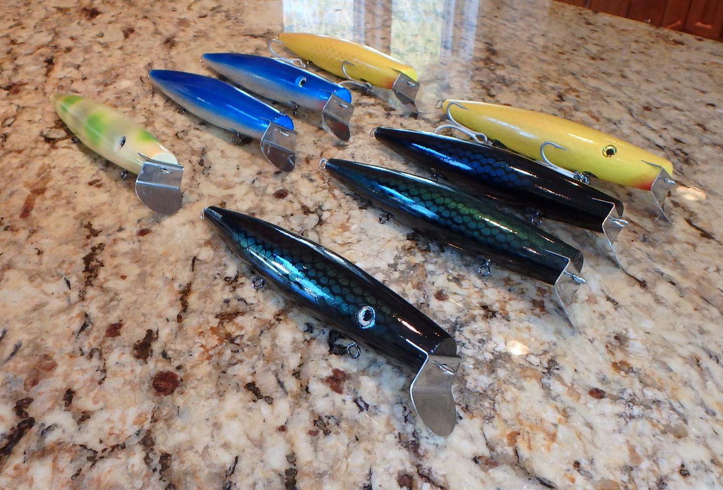 et tal: first is a lure made in surfster and topwater swimmer, cast a huge wake and sits lower in the water than lighter versions.