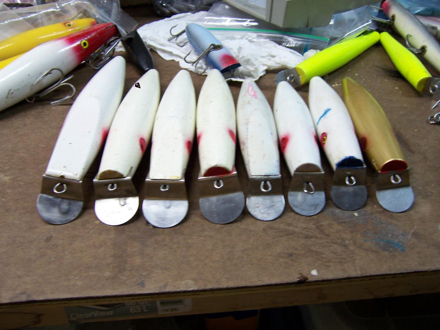 I found a few more pics I had. If you look at the far left there is a larger slopeheaded plug Musso made. It was a troller I believe. It is larger than his Sr.'s. Maybe BM copied that plug to make his Sr. plug. I do not have any info on that plug for some reason, even though I had it in my possession.