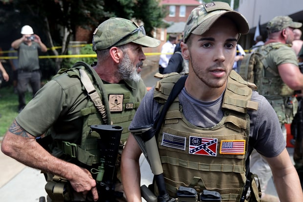 I can say I have ever seen Such a rally of white nationalist with weapons Gas mask shields and other things .