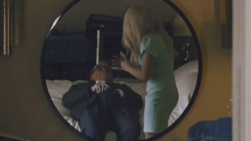 what man lays on someones Bed in a hotel room thats thats not theirs with his hands in his pants