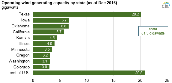 Meanwhile in reality, Texas is the leading producer of wind power in the U.S. at 33 megawatts.