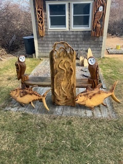allowed me to seal up three carvings, one relief carving of a couple cranes came out really nice and I banged out a couple tuna since they have sold well.
