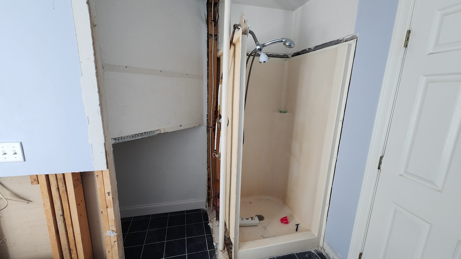 I’m not understanding that section of drywall at an angle about 30” above the floor to the left of the shower?