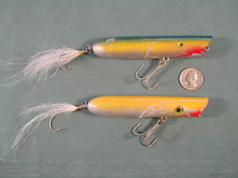 i did not have a digital camera at the time only a film one. im getting a digital camera for Xmas. one thing i have found out about pencil poppers is that if you bow your rod at a certain angle the popper will walk like a spook by its self this will work well with gibbs pencils and a yankee pencil popper this popper floats and is very easy to work on top