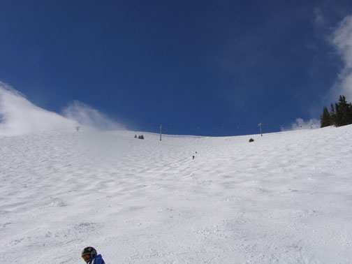 1) Fisherman, who were born and raised and spend their entire life within a few feet of sea level CAN NOT breath up there! THe first day i could hardly walk a flight a stairs without being winded...I mean really winded. (and I am not in ***that*** bad a shape) To get to the top of breck, (after taking a boat, car, two planes and another car) you need to take a 2 chairlifts, a t-bar, then walk a mile (steep up hill with not much O2 @ 13800' to get to the very top. ) For me, if I could not ride a chair or take a gondola, I didn't ski it. I could not climb to the top of my condo, no less the top of a friggin mountain. But even the trails that were reached by chairlifts were great.