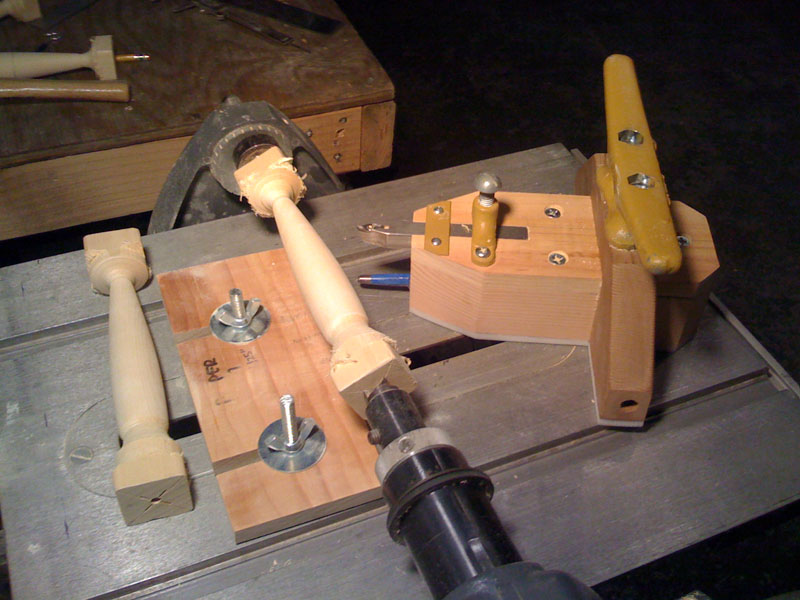 I attempted to make a duplicator similar to yours and I am having a big problem with tearout. I know it is the grind on the bit because I tried the same bit in the tool holder with the same results(it's an older logan metal lathe). I tried different types of wood and it tears everything, even maple which I had the best finishes with in the past. I've turned wood on this machine before, but I can't find the bit I used and I can't remember how I ground the bit to have it work right in the first place. What's the trick to this? I tried a square bit ground to a 60 deg. point with the nose radiused slightly, a thread cutting bit, and a radiused 90 deg. bit. I tried cutting on center, above center, and below all to no avail except above seemed to be the smoothest although I could only cut .020" at a pass and this machine can do brass at that depth. I even played around with the top and side angles and not much difference. Can you suggest anything for me to try? I know it shouldn't tear the wood up this much and I'm about at my wit's end with this.