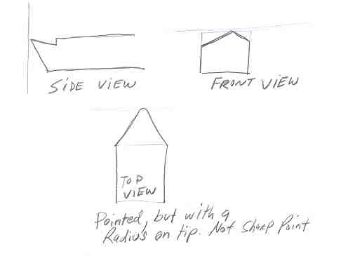 Capesams did you also put the angle on the front too. Not the relief angle on the front top to bottom but the angle side to side on the front picture. I found if you leave the tool flat on the top it will not finish as good. The half round was the tool I first started out with but switched to the type I am using now with no problems and I seem to be able to go faster. You will definitely get a smoother finish with a larger radius, but I think you can go faster with a sharper point. Trying to get best of both worlds. I don't know maybe I am just getting lucky. I am by no means an expert in wood turning. I just use what I know about metal and hope it apply's somewhat into wood too. You really do need to stone the tool to keep a sharp edge. I too move at a slow pace, especially after I launched that needle thing into my forehead. Gun shy now. You are right on about roughing stock round it will definitely help out in saving the tool edge life. Paul