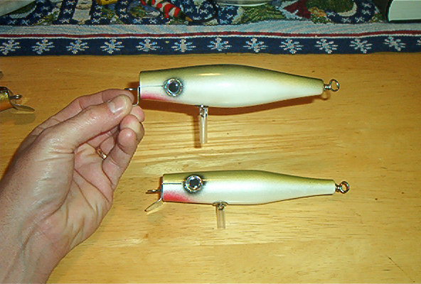 The minnow type swimmers have been something I've been thinking about for along time, and they were heavily influenced by some of Jigman's stuff. Once I started messing with the Lexan I knew I could get what I wanted so I've been working on them for the past month or so. I've been thru a LOT of prototypes, lots of lip angles and lots of lip sizes and shapes before I got what I wanted.