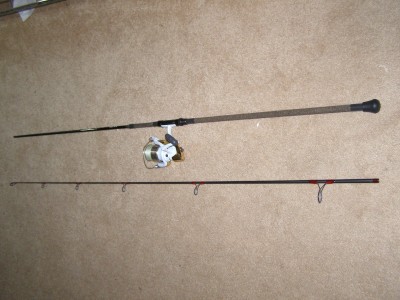 8'6 (2 piece) rated for an 1 1/4 ounce. Fast Action. Fuji Guides. Handle is 20" from the bottom of the reel seat.