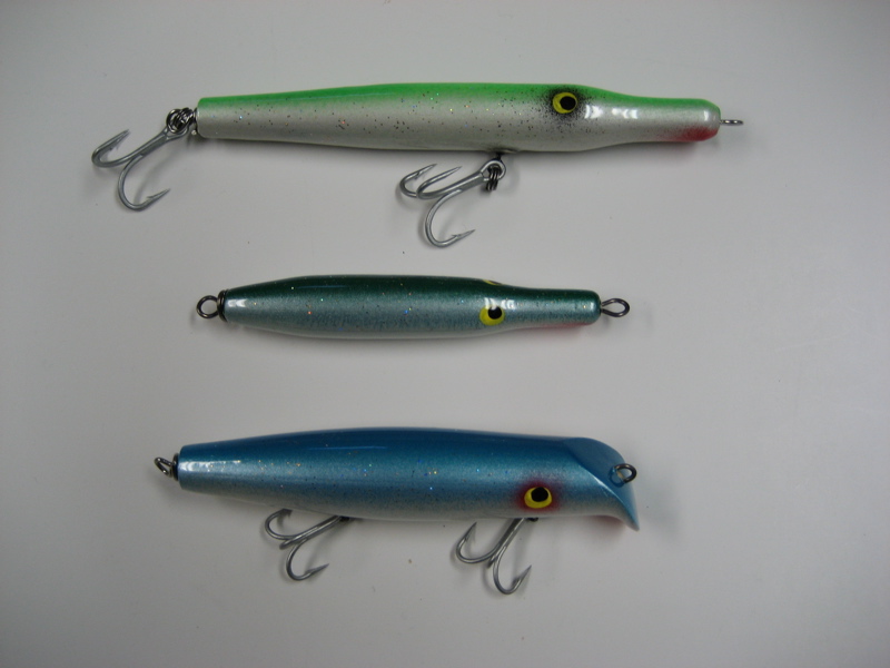 Dave, regarding the pencils, I don't think they are anything special. They're just an upsized version of a throw away (single hook) bluefish plug I made by the dozens when I was much younger. They're easy to work, with a lot of splash and short zigags, but for bass I find the slower gliding action of a 2 1/2 oz Gibbs very hard to beat (I think the Gibbs is one of the three best bass plugs ever built).