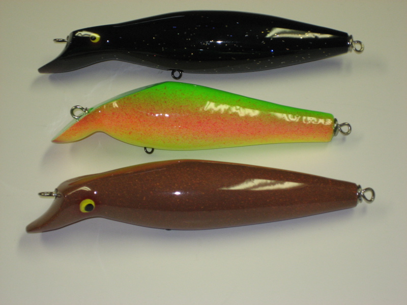 I think Paw Paw did, Eddy. It was one of the baits that got them going, I believe (but don't bank on it). Most of them had a deeply cupped face, almost popper style, but some were flat like mine. It swims pretty well............actually, too well........it has more action than I like in a swimmer. Tried to slow it with a heavy tail hook, but that brings the nose too high and it looses its bite. Maybe that's why they cupped the face. I'll probably upsize the belly trebles and put a tail on it (maybe with a little weight back there as well).