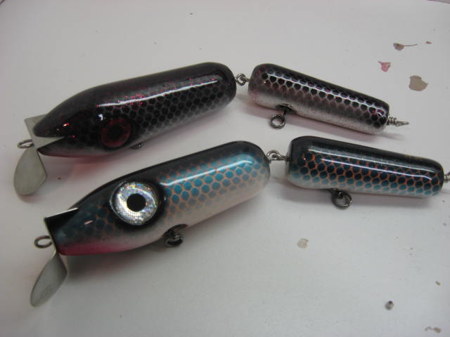 Im open to trades! show me whatcha got! Heres a few pencils from the same batch. 3.5 ounces and 9 inch. I think they could use a little more tail weight to sit a little deeper on the @ss end. Next pencils will have 1.5 ounce tail weights and a flat bottom.