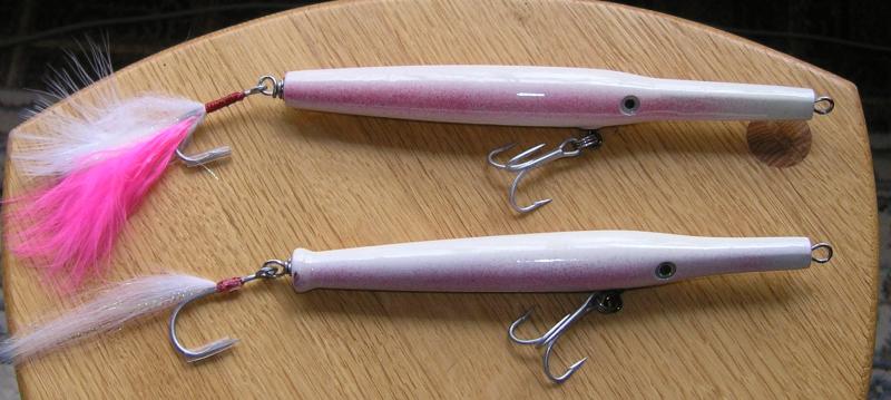 I finished a few plugs over the weekend that I have been working on recently. A couple Joppa Jinx (THANK You Rockfish!) no fins yet, a couple of white/pink needles, and a couple of Blue Streaks now completed