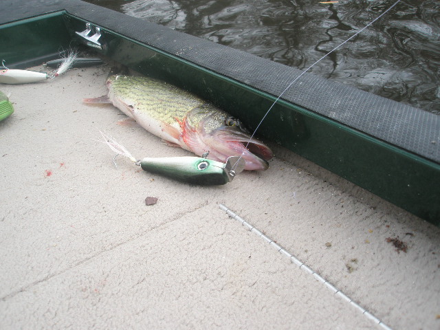 took a 30" this morning, not on my own plug, but on wood none the less, sorry no pic, but it was so crappy out this morning, it wouldn't have mattered. Lure of choice was a little white darter. the skunk, she is gone.