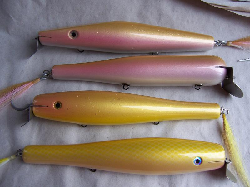 These were some swimmers, bottom 2 in picture, I did and I really like one and kind of liked the other. I was going for a larger G2 slim look, but bigger. The difference was the lip. The top 2 are a Lupo troller and a Bluestreak .