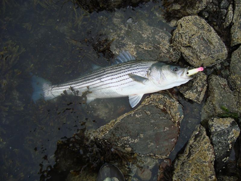 got this baby on a nice rock in montauk, my first striper on my own wood! yellow/red pencil. very gratifying. this is what you get when you go to an event like plugfest and you get an idea. i just got into turning, but i love it! thanks guys!