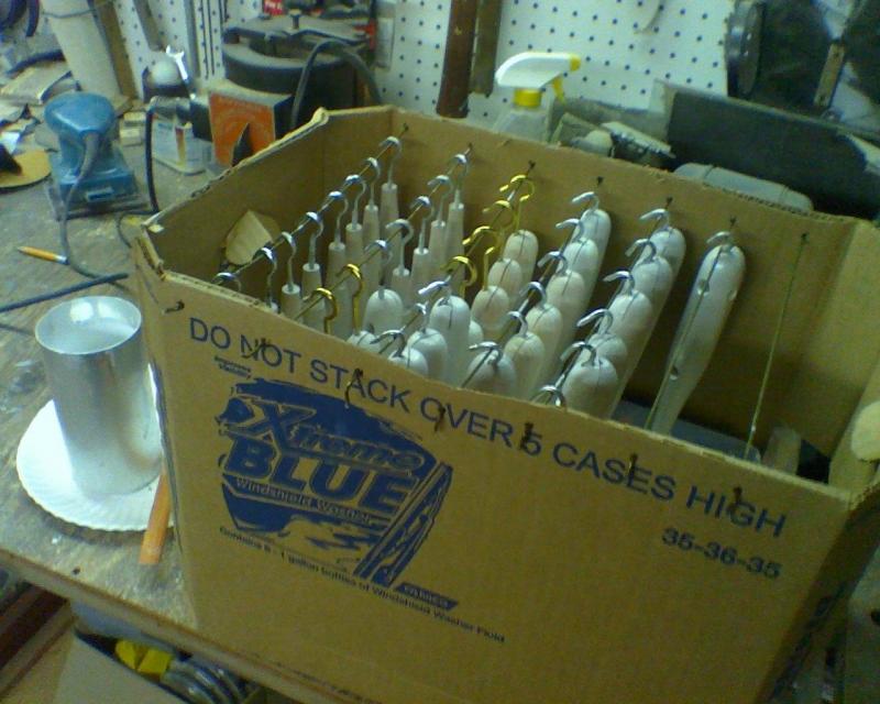 Good morning. I see we're all having fun. Been busy sealing the remainder of the plug battallion. I started to dip primer; zinseer gold label , cut 2-1. so far so good. 2 coats. No smell , overspray and spray gun cleaning. Does anybody dip primer? Here's my low buck dripping system.