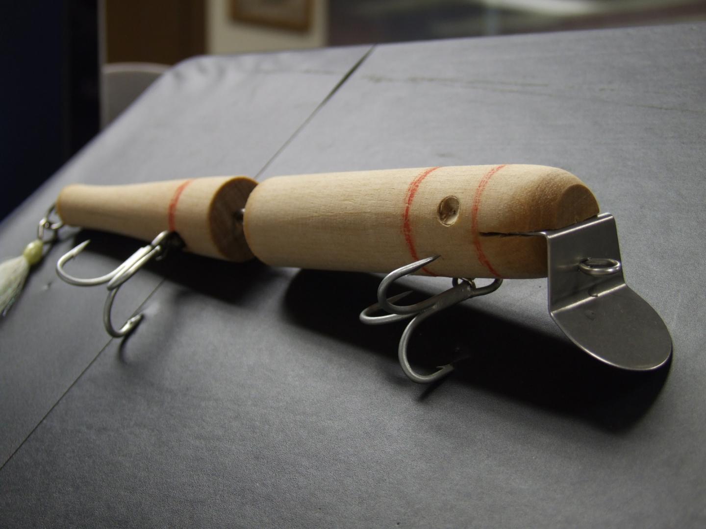 Anyways, I used Numby's specs for the smaller jointed masterlure, but I did the plug in birch(like the original) and I used a turned down Atom 40 body. I simply put an Atom 40 body on my duplicator and set the diameter at 7/8".