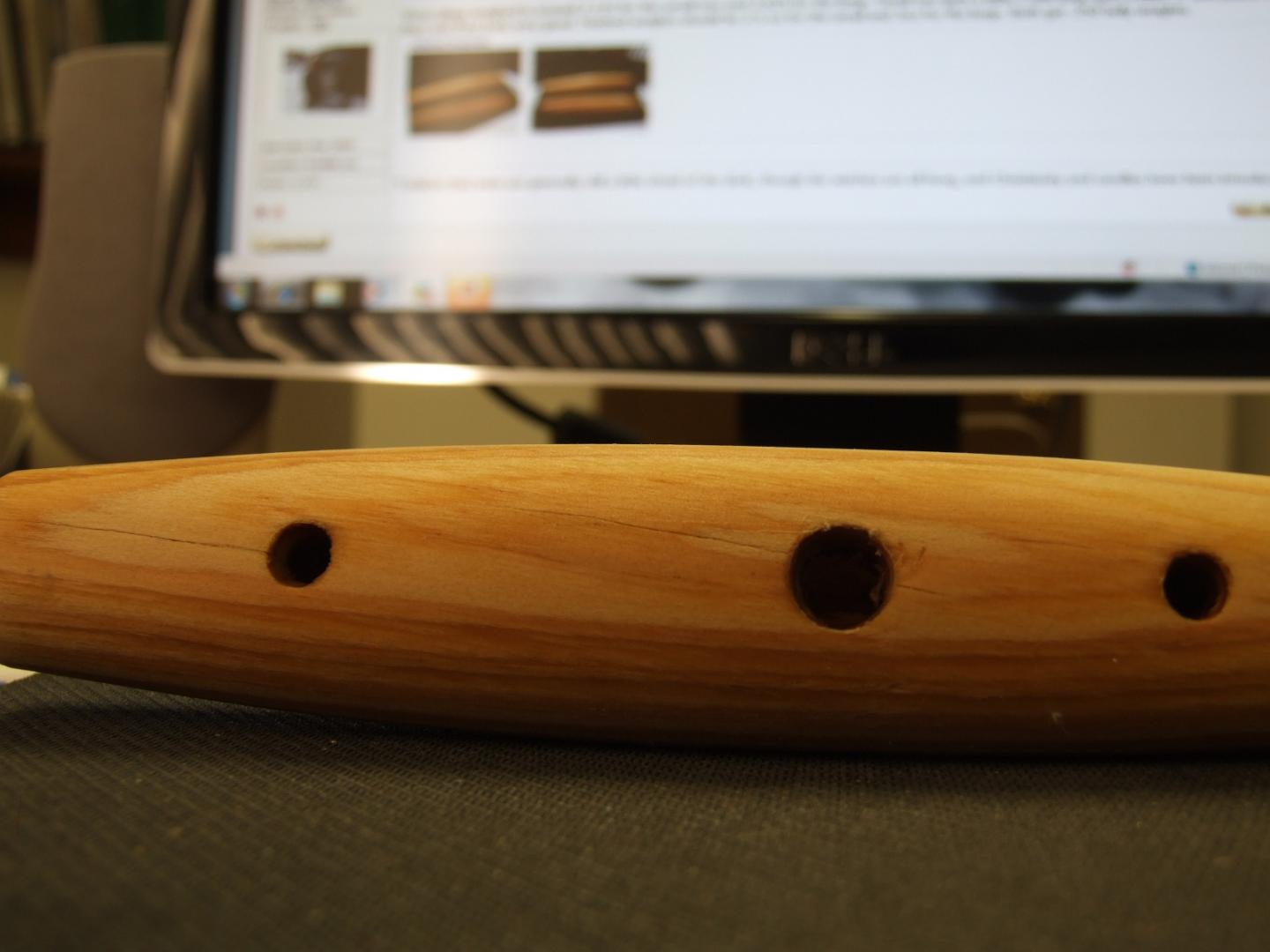 The neat thing about this stuff is its got lazer straight grain, which causes the lure body to parallel with the water, so cutting lip slots and hydro testing was quite simple. I'm a bit concerned with the brittle nature of the wood due to the fact I placed a piece in the water(unsealed) very briefly to orient it and it cracked around the hook hanger holes. Its bouyancy seems to be somewhere between AYC and pine.