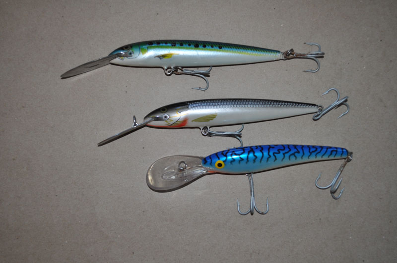 Lot of 6 plugs. The blue bomb, eel and yellow swimmer all look new. $20