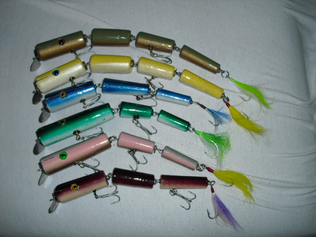 All swim well. The ones with the longer head piece have a nice waggle. While the equally jointed plugs have a nice wiggle, like an eel.
