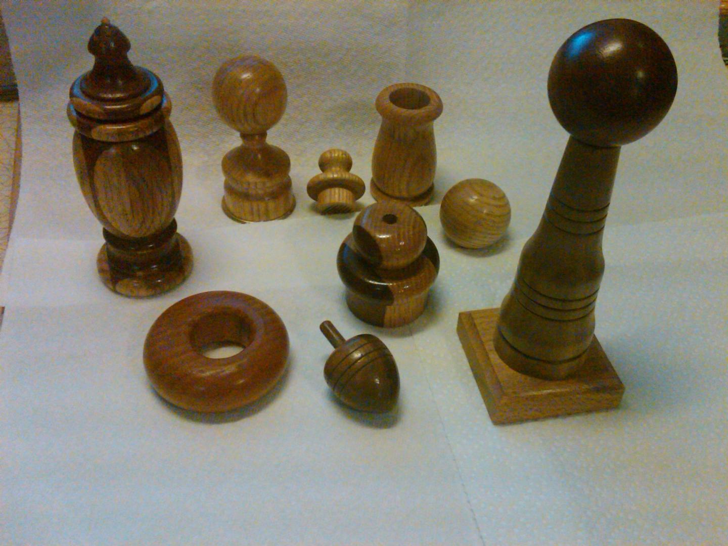 Here are few items my dad, Plugbillder, has turned over the last few years in addition to plugs. Yesterday when I visited we put new Cherry edging on an old cutting board that was separating. We also retrofitted the 1999 Tuarus (fishmobile) CD changer holder to handle the 2001 CD changer. Always a great visit.