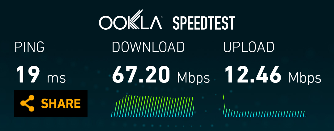Thought I would also test the wifi speed, interesting I have a dual wifi 2.4/5Ghz Netgear wifi and intesting there is a speed differential. Maybe in the setup: I am probably 12-15ft from the 2.4GHz source but <5ft from the 5GHz in which I use a secondary amplifier which receives the 5GHz and rebroadcast in 2.4GHz.