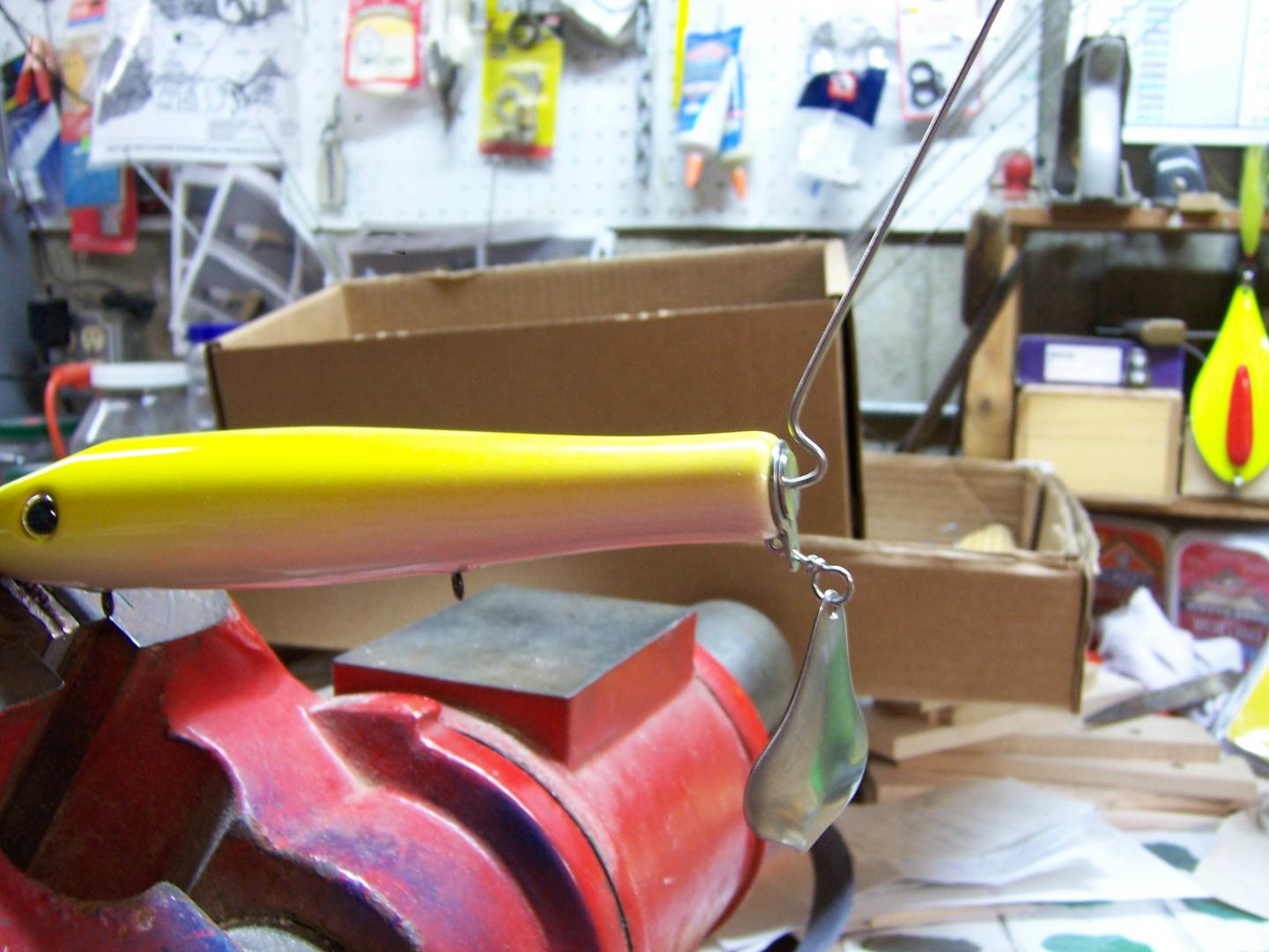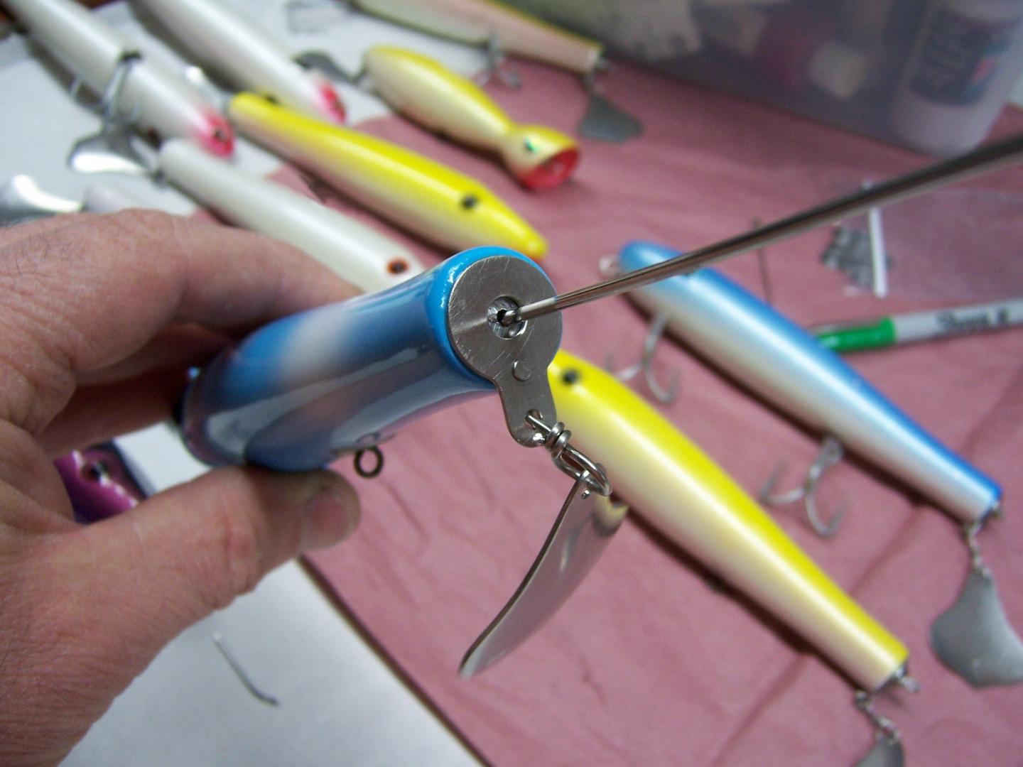 Here is how I do the tail wrap as I have kind of given up on the threaded wire thing as it takes way too much time to thread and I think it may be compromised by a big fish as it is such a small thread. I feel the wrapping of the wire is much stronger. Takes some practice for sure but works great, after a while. I also am now anchoring the hanger into the body of the plug so it can't move around which can be aggravating. I pin it into the body now and glue it.