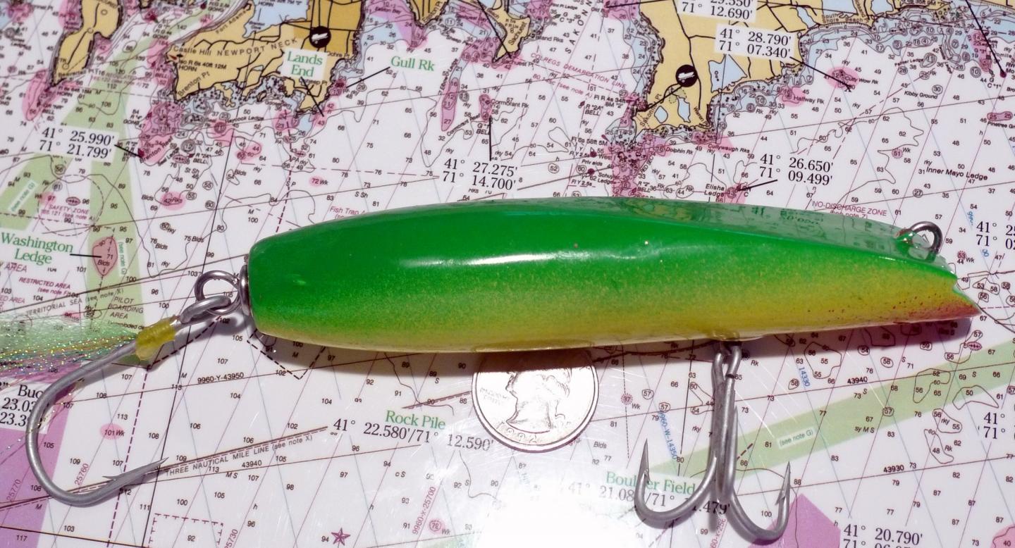 Here ya go Chunkah. She's right around 8" and just shy of 3ozs. Swims great. Nice wiggle. Hope you like it. The other for Bill is just finishing up drying then it'll be ready for clear.