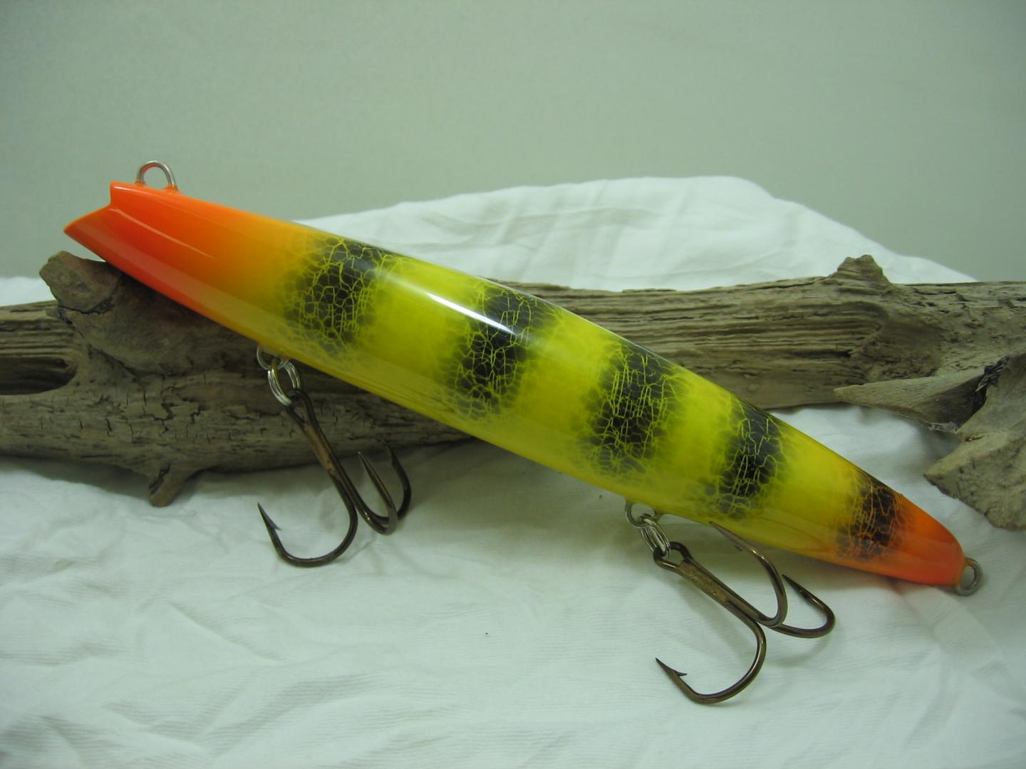 A new thicker bodied mack slow-sinking 7" jerkbait. (top) I will have a bunch more of these style plugs.