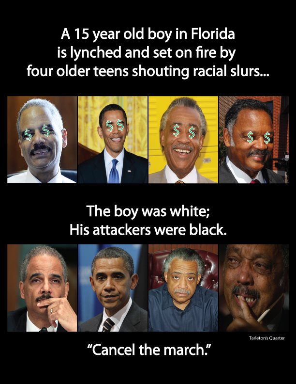 So I'm making it up? Sharpton wasn't using this case to fan the flames of hate like he always does? Sharpton has nothing to do with it? Tell that to the white folk who have been beaten in retaliation for this. Tell that to the elderly couple who had to move into a hotel because Spike Lee Tweeted their address. Tell that to Zimmerman, who had a bounty put on his head by the Black Panthers.