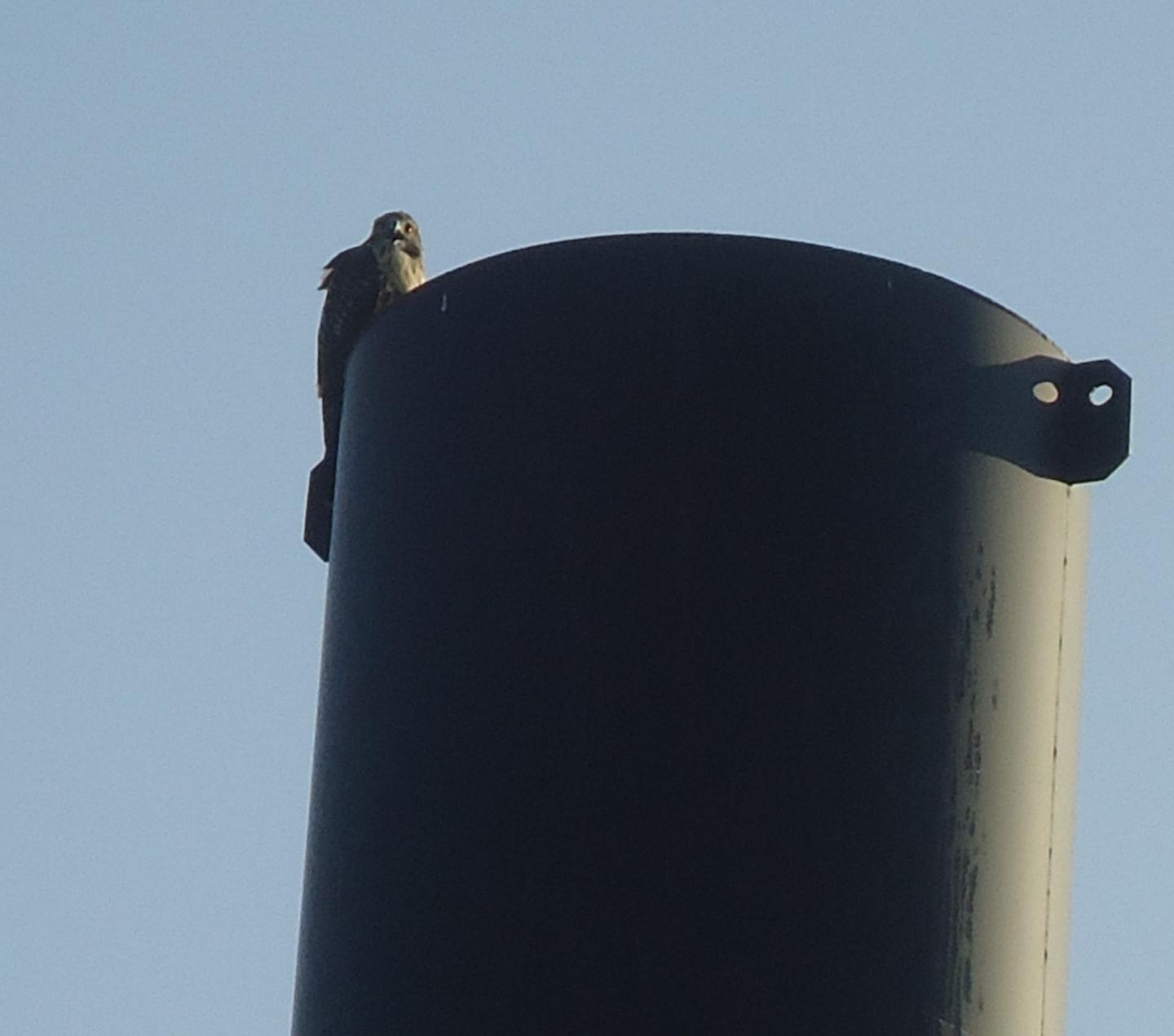 I came into work the other day and this hawk was sitting on our smokestack screeching.