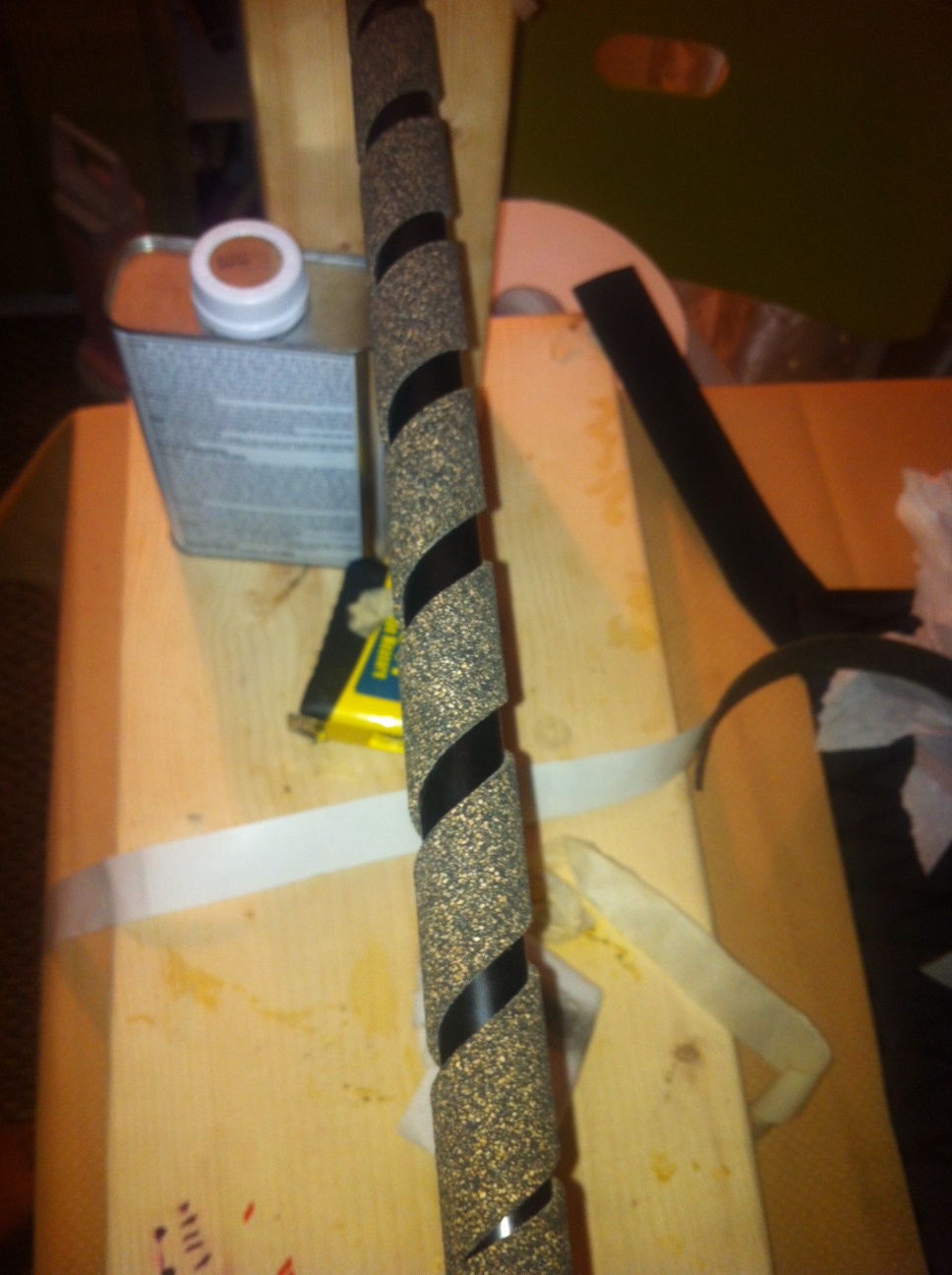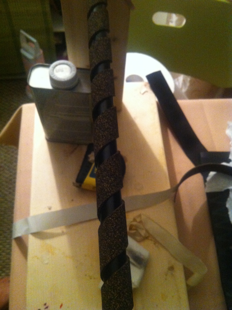 I like my foregrips to be 10 to 12" long, seeing i fish a lot of different plugs and almost never hold my rod at the reel seat. I used a piece of EVA foam from CMS, 11" long and only weighs .70oz where the same amount of cork and shrink weighed 2 oz.