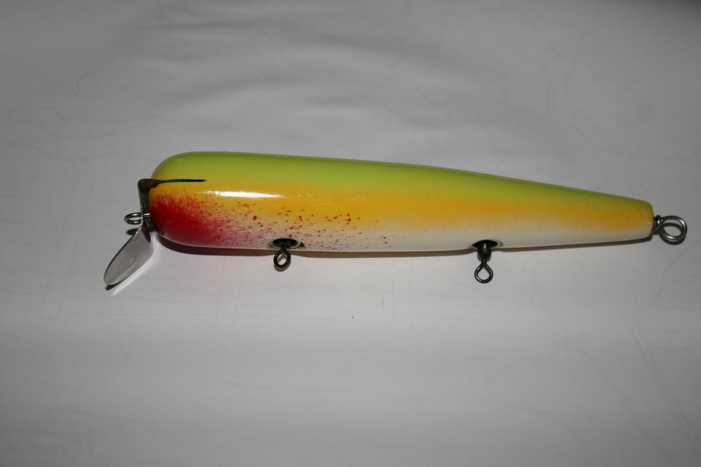 Handcarves are my new obsession! The yellow one is a 7" redfin copy, the middle one is an 8", I wanted a slightly larger plug, the 3rd one is 11" around 4 oz , the mackerel paint was done by Jmac, they look lifelike!