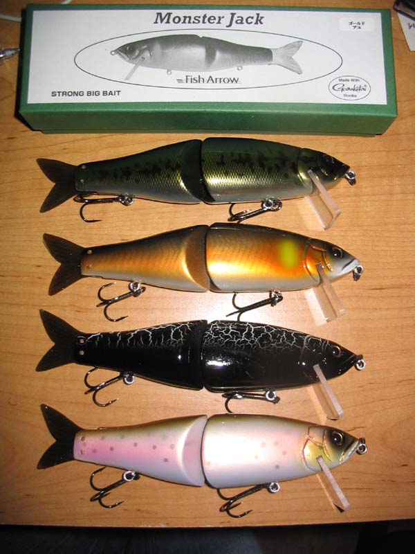 Okay here's the pics some mite be dark. These are the fish arrow ones and are hand made of wood in japan. The smaller one is a top water spook like bait.Price $59.99