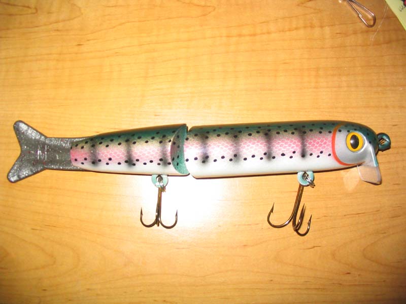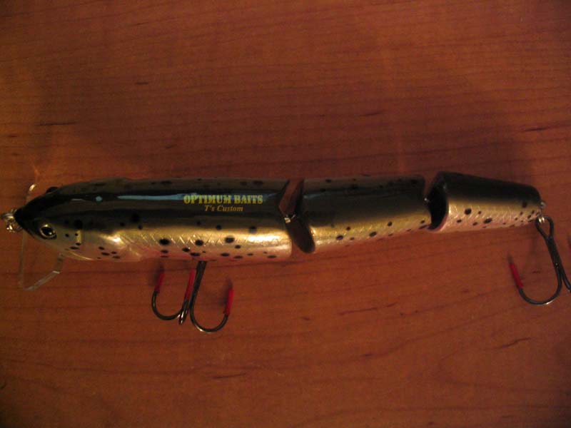 This is the 3:16 special edition walk bait. price $150.00 The tail on this bait is made of Lexan