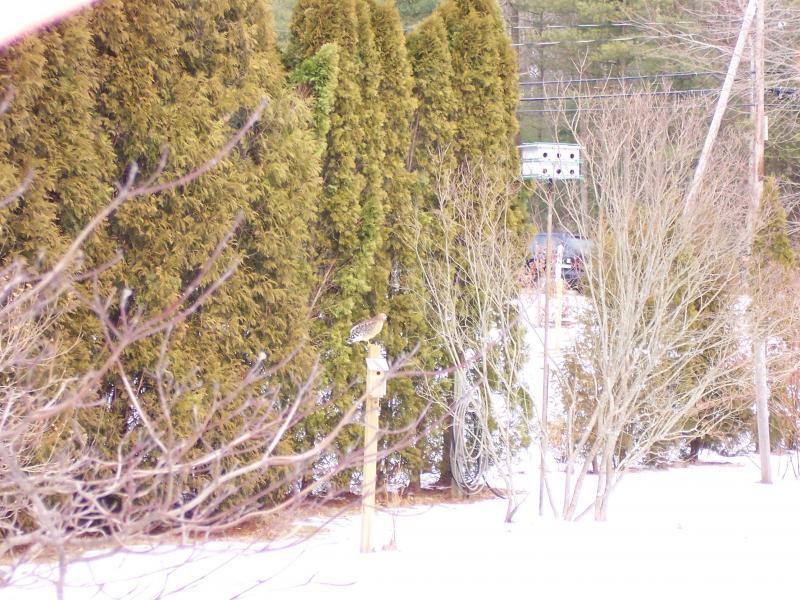Come out and play little birdy. Look who I just saw out here this afternoon. Looking for stupid birds eating a feeders. Kind of far away so pics. are not that good. Been here a lot lately.