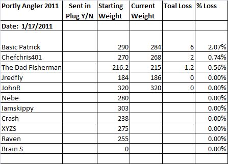 Going to do weekly Monday night weigh-ins this year. Try to have them in by 10:00 PM. If late just try and update ASAP.