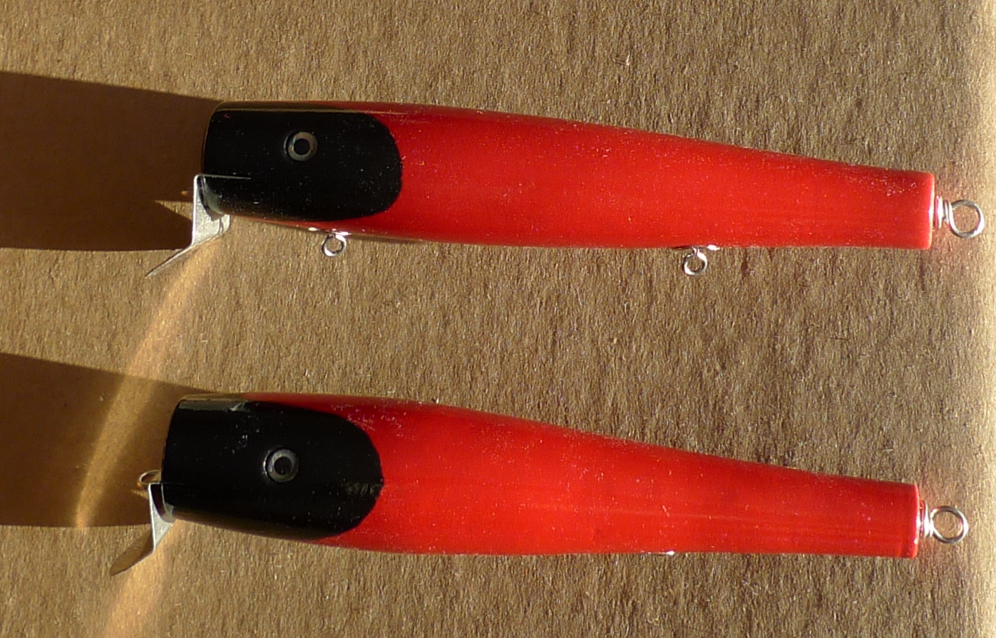 Does anyone have the weight of the original? By the info on Sgt Striper's paperwork, they used both holes in the lip. Most likely to vary the diving depth. This looks like a casting plug rather than a trolling plug. I would like to try to make one for trolling by fooling around with the weight distribution.