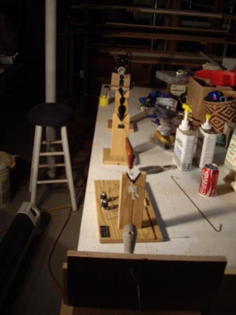 Jury rigged the rod lathe spinner. Just put nine of them on it. They were still tacky. We'll see what comes of it. Also posting a pic of my mackeral stencil.
