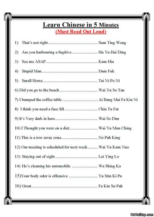 So she went to see him. Upon entering the examination room Dr. Chang said 'OK take off all your crose.'