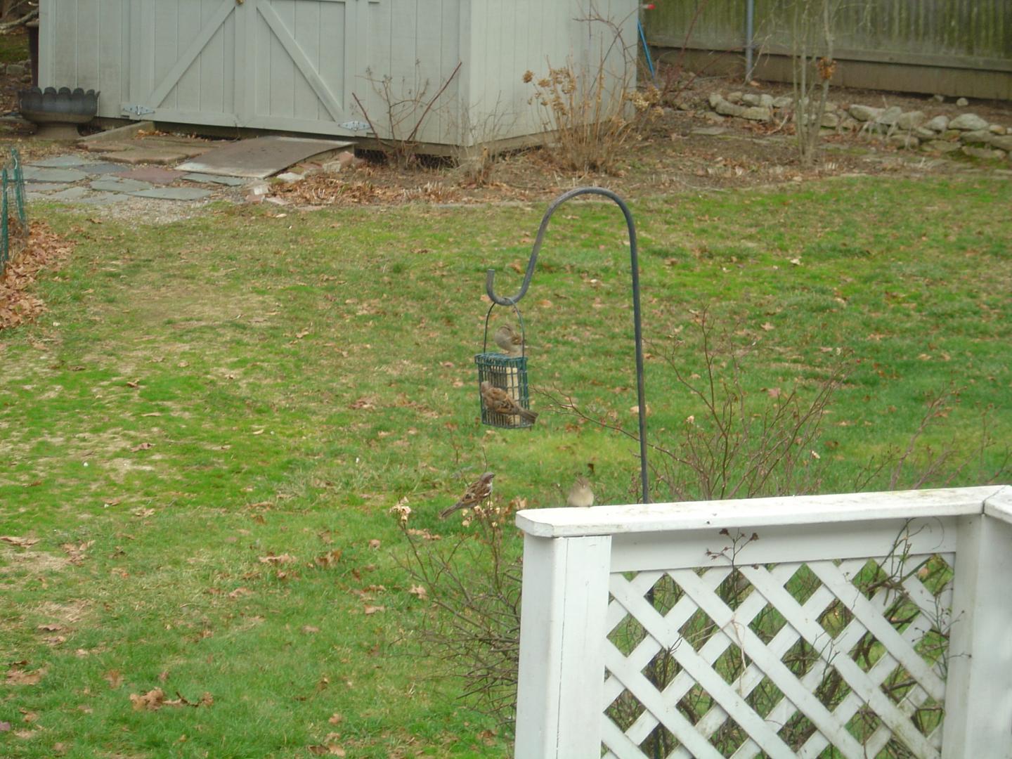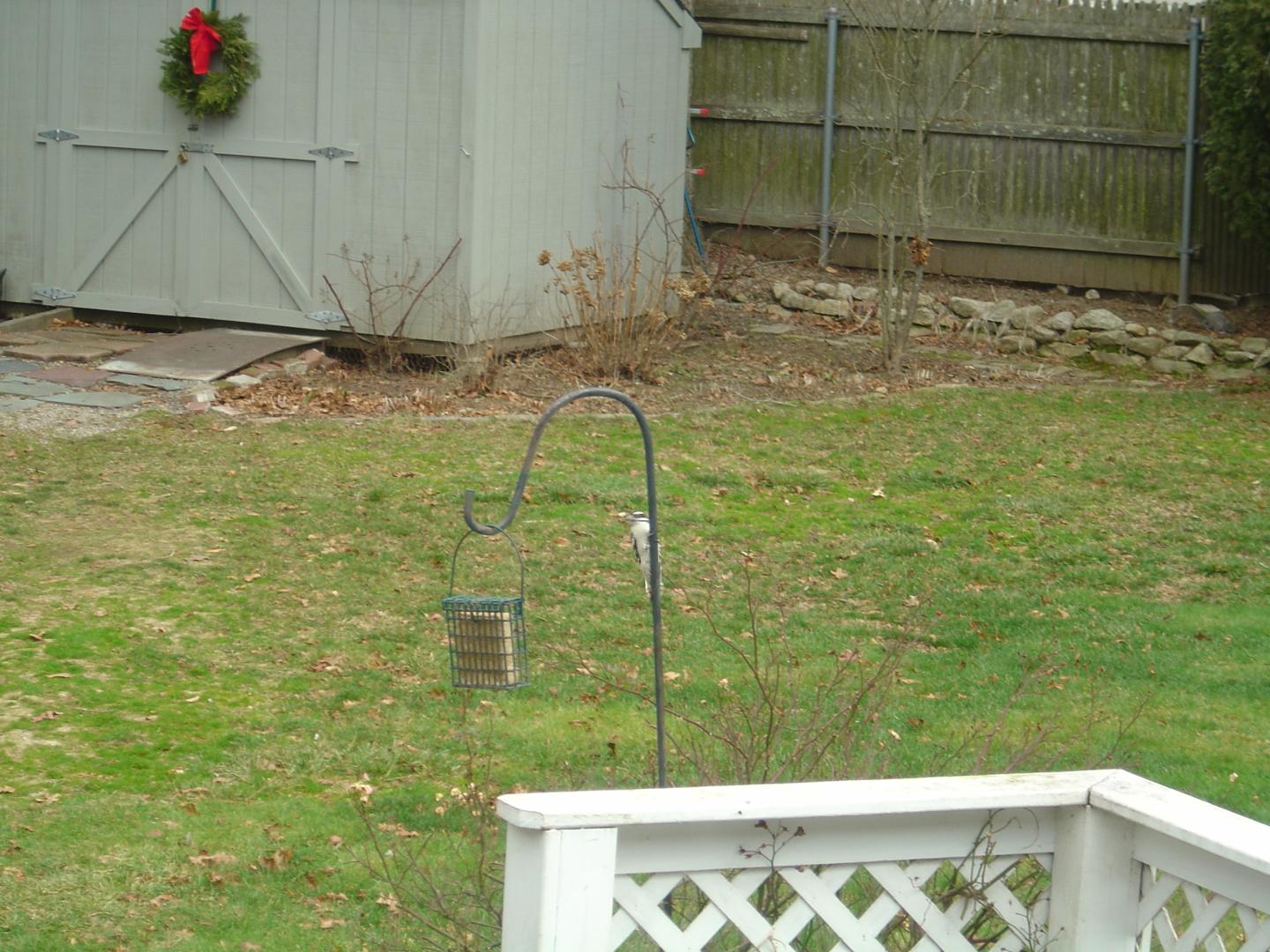 Not exactly backyard but I did see a Bald Eagle at Whitman's Pond in Weymouth today. Driving past the boat ramp on Middle St. glanced out and thought I saw something -black and white- in a tree on the opposite shore. Got my glasses and that's what it was. Watched for about 30 minuites after calling my brother to see if he had a camera with telephoto lens. He took a couple of pics but thought it was too far away to come out clearly. It was still there when we left.