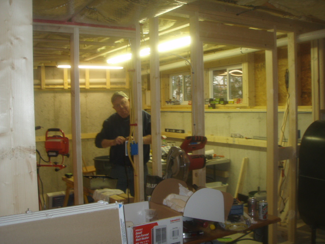 There are 9 outlets in the shop. The dust collector, lathe and air filter will all be on their own circuits. The lighting is on its own circuit to prevent dimming. Everything is wired 20-amp.