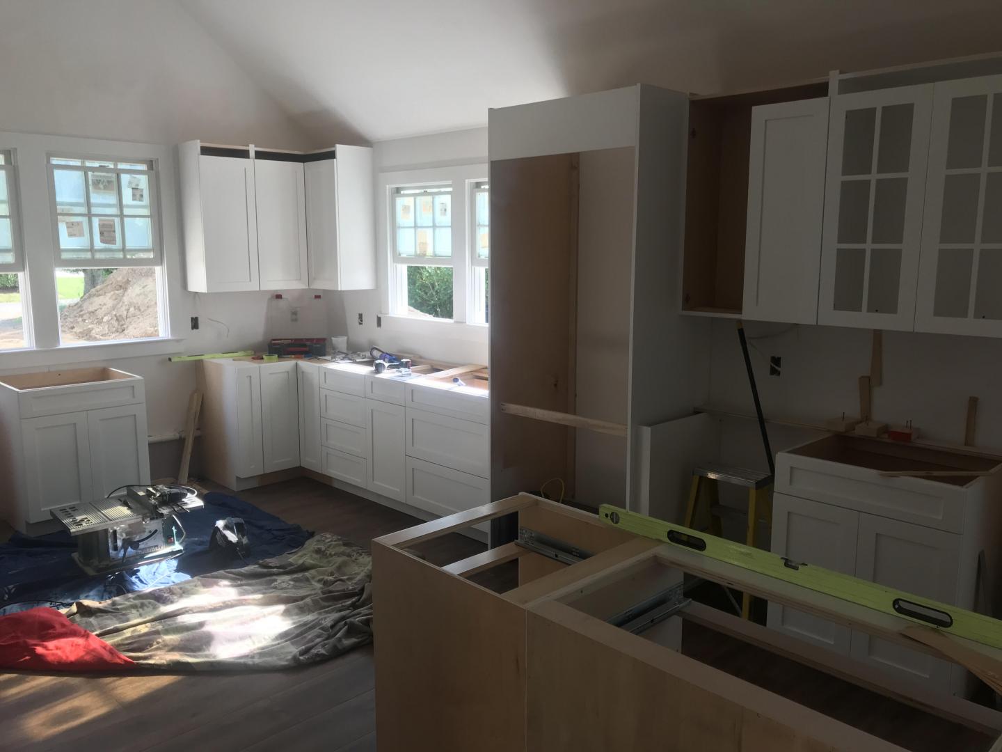 more in-progress pics....third pic is house next door with white cabinets and gray island cabinets.... manufacturer is Fabuwood