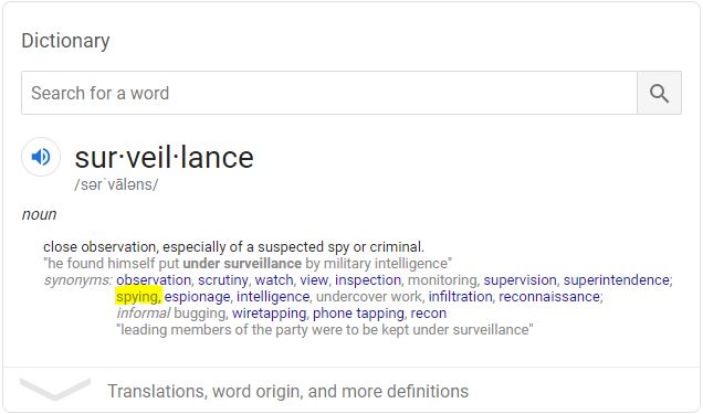 i cannot believe you are differentiating between spying and surveillance. this is where rational conversation isn’t possible anymore.