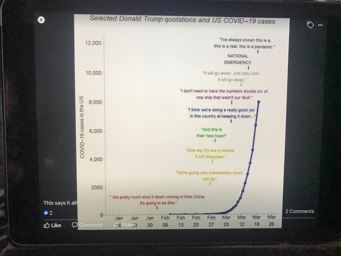 Trumps messaging from the beginning has been pathetic, want to hear how a leader addresses the people who elected him, listen to Gov Cuomo. Straight honest information based on science and facts, not hunches, gut feelings or hopefully miracles. Trump didn’t cause the virus, but he ignored the science hoping what was predicted wasn’t going to happen and has been weeks if not more than a month behind with actions to prevent the spread and gear up for the medical community to handle it.