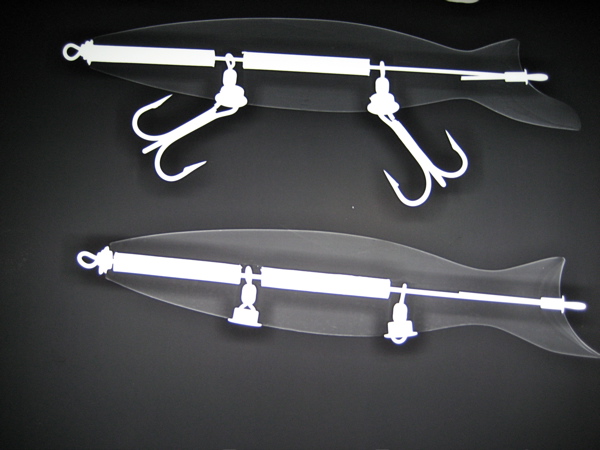 Nice bottles for sure, I weight my AYC one in the tail and under the chin, the maple ones get a weight just behind the hook which is forward of center and again in the chin... I like the X ray shots....